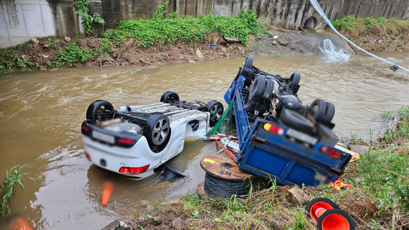 차량 2대 충돌 후 하천으로 추락..2명 부상