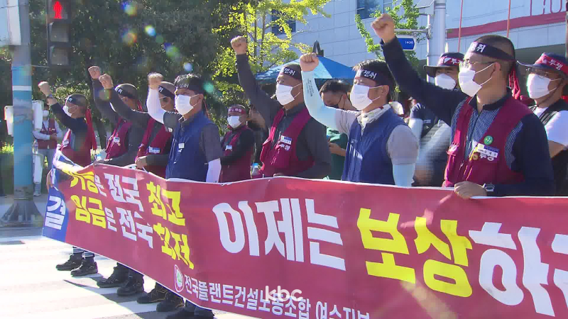 플랜트건설노조 여수지부는 성명을 내고, "여수산단이 수조 원의 수익을 내고 정규직 직원들은 임금 인상과 성과급 잔치를 벌이는 동안 일용직 건설 노동자들은 배제돼 있었다"며 "일한 만큼 정당한 대우를 해달라"고 주장했습니다.또 "원청업체의 최저가낙찰제가 사라지지 않으면서 하청업체와 건설 노동자들은 힘겨운 시간을 보내고 있다"며 "업체는 임단협에 성실히 임해달라"고 요구했습니다.