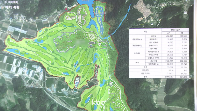 특히 관광단지에 조성되는 골프장은 무정면 한 마을을 포위하고 있어 주민들은 개발과정에서 발생하는 환경파괴 그리고 골프장 농약으로 인한 환경오염과 주민 생활권 파괴 등을 걱정하고 있습니다.