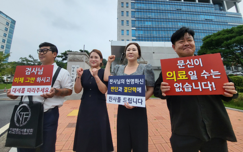 1심 재판부는 "반영구 화장 시술은 단순한 기술의 반복으로 고도의 의학적 지식과 기술이 필요한 의료행위로 보기 어렵다"며 "귀걸이용 귀를 뚫는 행위가 일상화된 것처럼 해당 시술도 한정적인 의학지식과 기술만으로도 가능해 보인다"며 무죄를 선고했습니다.