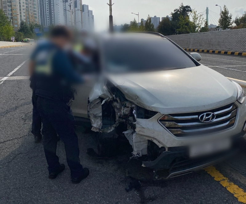 10일 오후 2시 50분쯤 광주광역시 광산구 수완동 수완지하차도 입구에서 SUV와 오토바이가 충돌하는 사고가 났습니다.