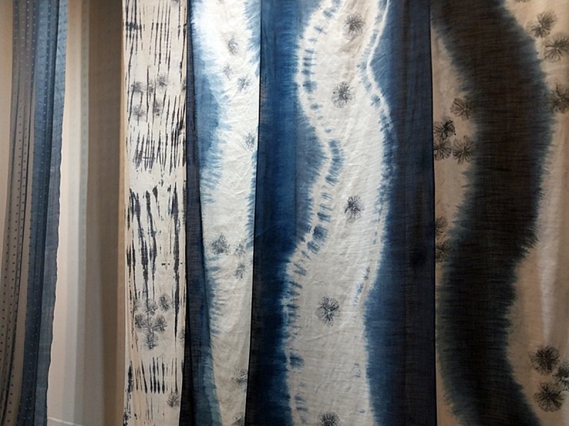 박물관 내부 기획전시실에서 진행되는 '블루리버'전에서는 한 필의 원단을 각기 다양한 기법을 활용해 쪽으로 염색한 작품을 관람할 수 있습니다.