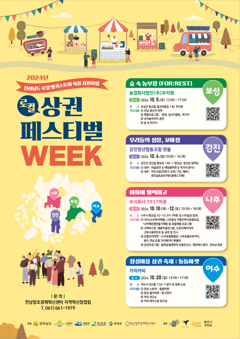 민간 주도 지역 혁신상권 조성을 목표로 '2024년 로컬 앵커스토어 육성 지원사업'을 추진하는 전라남도가 각 상권의 활성화를 위한 '로컬상권 페스티벌 위크(WEEK)'를 진행합니다.