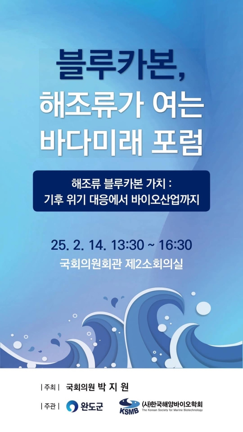 해조류의 블루카본 가치와 역할을 재조명하는 '블루카본, 해조류가 여는 바다 미래 포럼'이 14일 국회에서 개최됐습니다.
