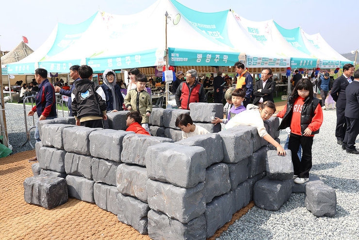 ▲ 지난해 열린 제27회 전라병영성 축제에서 '병영 성곽 쌓기' 체험 중인 어린이들의 모습 [전남 강진군]