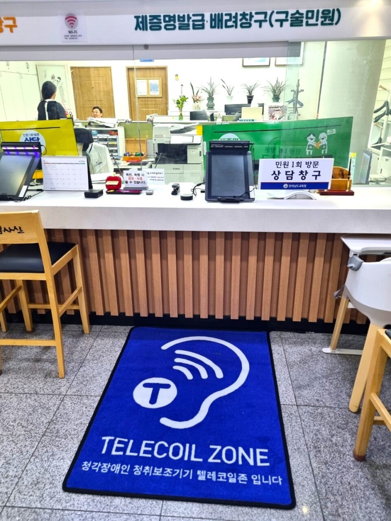 민원인이 텔레코일존에 들어서면 해당 보조장치를 통해 교신 음성을 선명하게 들을 수 있어, 정확한 민원 안내가 가능합니다.