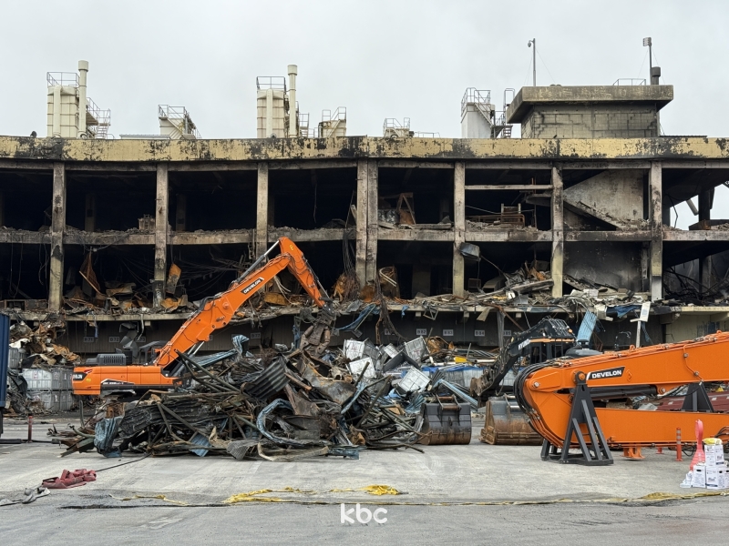 소방당국은 건물 안 40~80m 지점에 희미하게 남아있는 불을 마저 정리하고 재발화 가능성을 차단하기 위해 중장비를 동원해 건물 해체 작업에 나섰습니다.