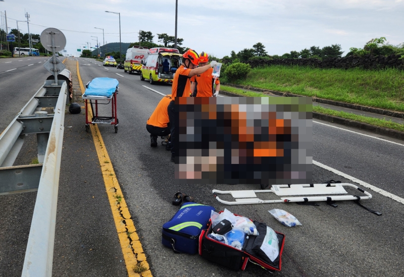 ▲제주 서귀포시 성산읍 오토바이 사고 구조작업 [연합뉴스]