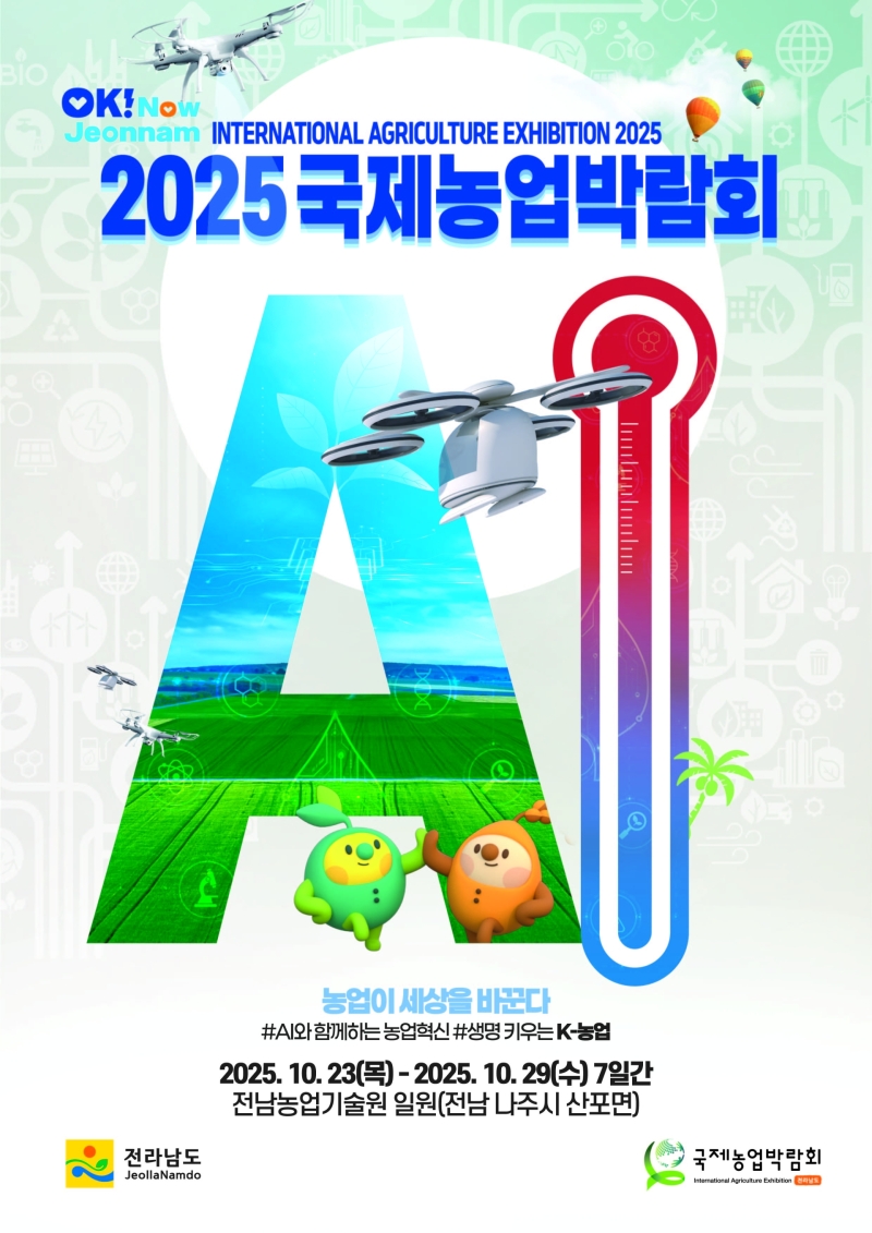 2025국제농업박람회는 10월 23일부터 29일까지 나주 산포면 전남도농업기술원 일원에서 개최됩니다.