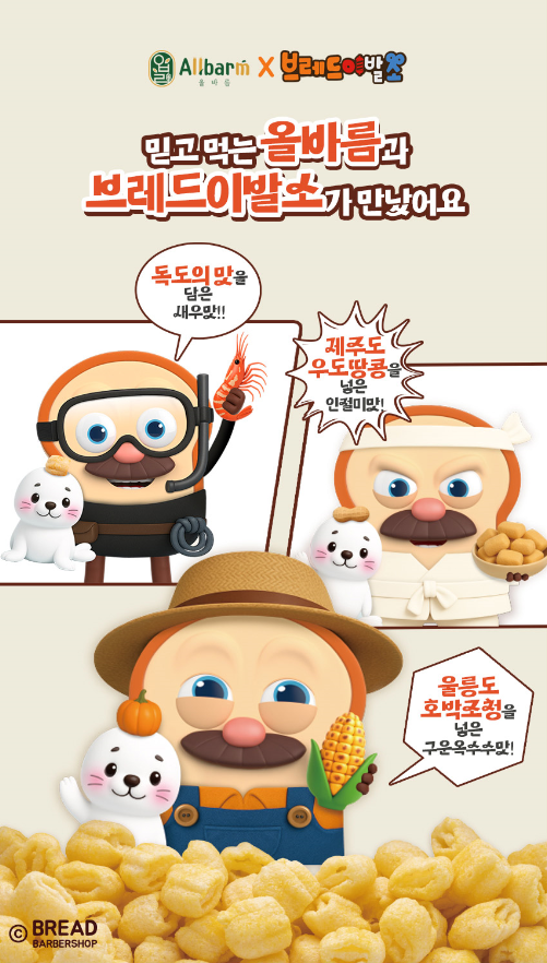 아이들에게 친근하게 다가가기 위해 인기 캐릭터 '브레드 이발소'와 협업 패키지도 제작했습니다.