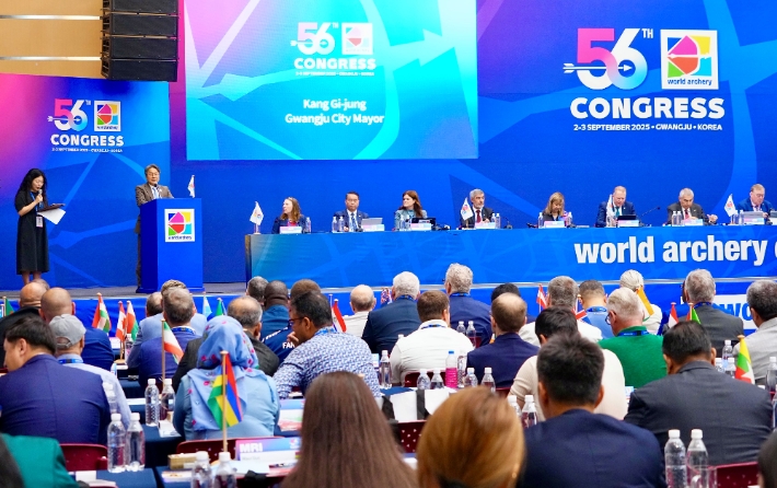 광주광역시는 2일 김대중컨벤션센터에서 '2025 세계양궁연맹 총회' 본회의가 개회했다고 밝혔습니다.