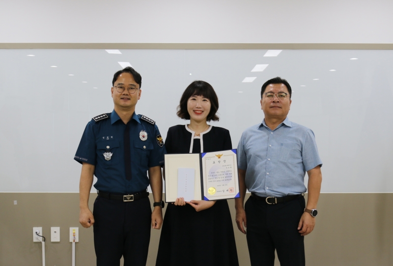전남 순천경찰서는 15일 순천농협 해룡지점 유보람 직원에게 감사장과 신고 포상금을 수여했다고 밝혔습니다.
