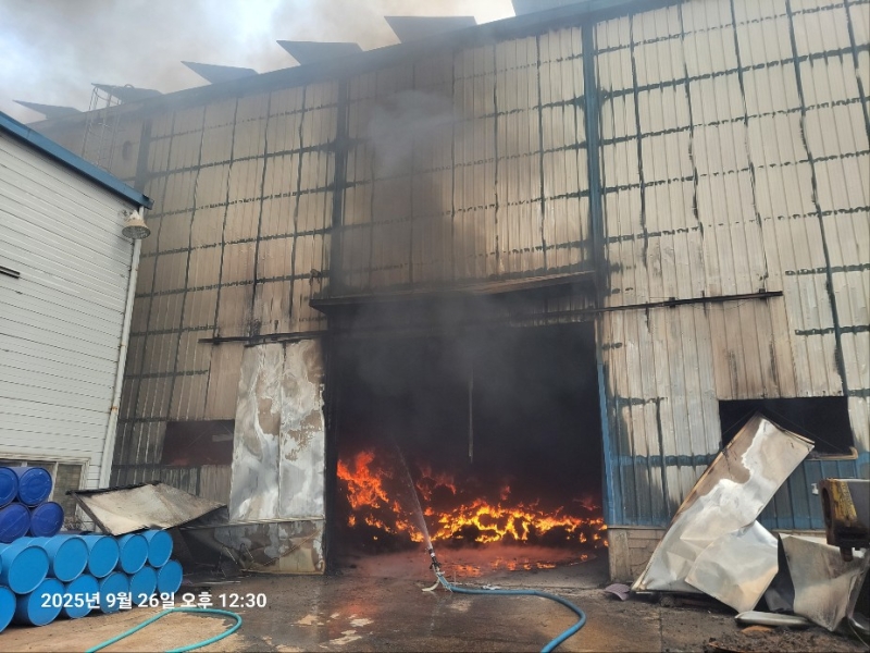 26일 오전 11시 35분쯤 광양시 태인동 광양 국가산업단지의 한 타이어 부품 업체 창고에서 불이 나 2시간 45분 만에 초기 진화됐습니다.