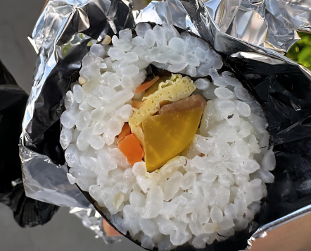 김밥 속 내용물은 단무지와 소량의 채소가 전부였으며, 대부분이 밥으로 채워져 있었습니다.