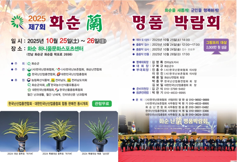 이 가운데 '제7회 2025 화순 난 명품 박람회'가 오는 25일부터 26일까지 이틀간 화순 하니움문화스포츠센터 실내체육관에서 개최됩니다.