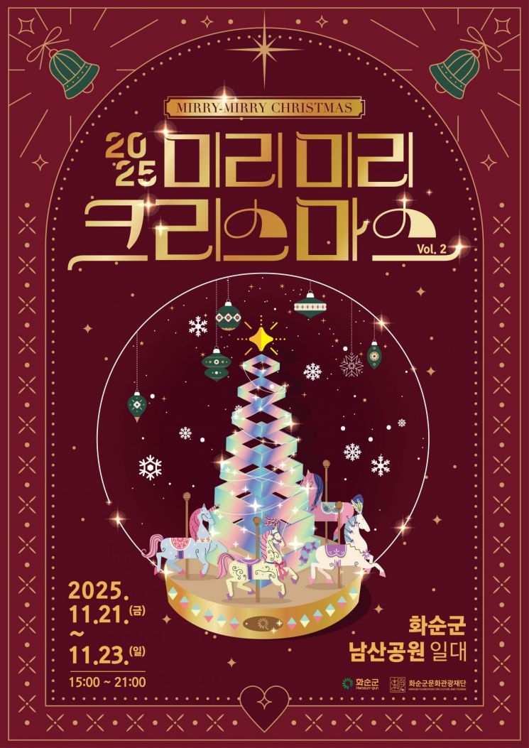 전남 화순군이 오는 21일부터 사흘간 남산공원과 고인돌 전통시장 일대에서 '2025 미리미리 크리스마스 vol.2'를 개최합니다.