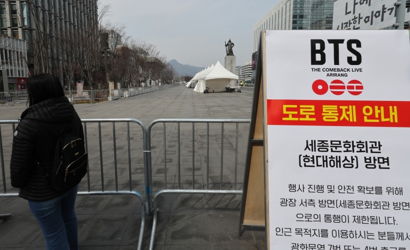 결혼식 당일 오후 8시께 광화문 광장에서 BTS의 컴백 공연이 열리면서, 인근 지하철역은 열차가 무정차 통과하고 시내버스는 우회 운행하는 등 사실상 대중교통 이용이 크게 제한될 전망입니다.