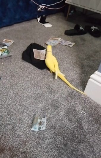 헤로인과 코카인 등 마약을 대거 발견한 경찰은 가넷의 휴대전화기를 압수해 살펴보던 중 그의 여자친구가 키우는 애완용 앵무새가 돈뭉치를 갖고 노는 영상을 발견했습니다.