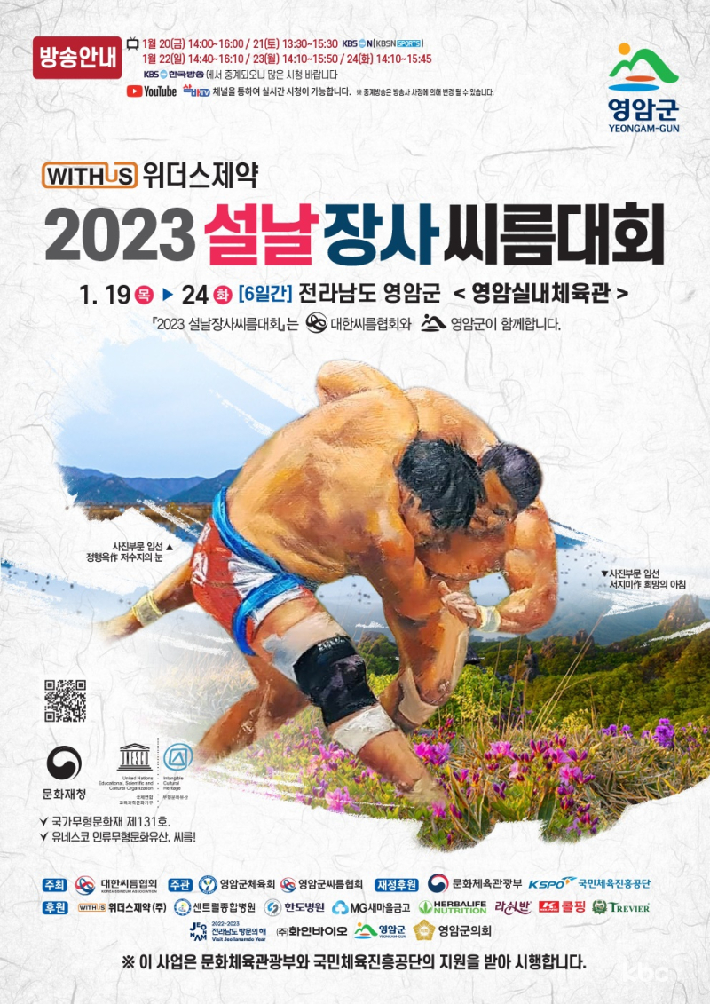 대한씨름협회가 주최하고 영암군 체육회와 영암군 씨름협회가 주관하는 이번 대회에선 남자 체급별 장사전(태백급·금강급·한라급·백두급), 여자 체급별 장사전(매화급·국화급·무궁화급), 여자부 단체전이 열리며 3개 종별에 270여 명의 선수가 참가합니다.