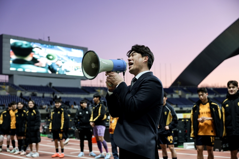 ▲2026 하나은행 K리그1 2라운드 홈 개막전에서 감독 데뷔 첫 승을 신고한 이정규 감독 [광주FC]