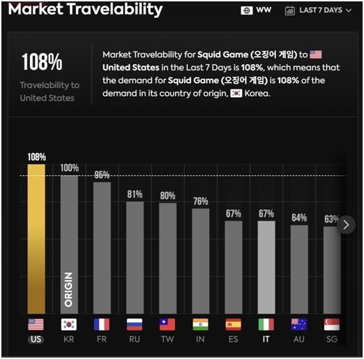 콘텐츠의 글로벌 수요를 측정하는 패럿애널리틱스는 전날 기준 시즌2의 '확산성'(travelability)이 미국에서 108%로 나타났다고 밝혔습니다.