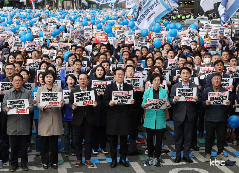 이재명 민주당 대표는 지난 11일 서울광장에서 열린 '강제동원 해법 강행 규탄 2차 범국민대회'에 참석해 "굴욕적 배상안 강행 뒤에는 한·일 군수지원 협정과 한·미·일 군사동맹이 기다리고 있다"며 "한·미·일 연합훈련을 핑계로 자위대의 군홧발이 다시 한반도를 더럽히는 일이 발생할 수 있다"고 목소리를 높였습니다.