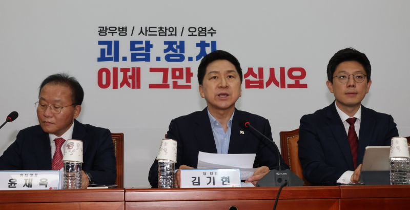 김기현 국민의힘 대표는 사드(THAAD·고고도 미사일 방어체계) 기지에 대한 환경영향평가가 지연된 배경에 문재인 정부 시절의 '3불1한'이 작용했다고 비판했습니다.