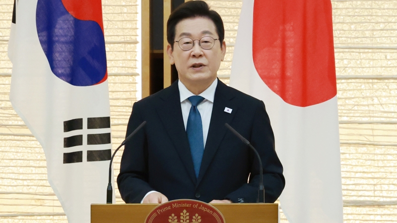 ▲ 이재명 대통령이 23일 일본 도쿄 총리 관저에서 열린 한일 정상 공동 언론 발표에서 발언하고 있다 [연합뉴스]