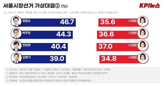 이번 여론조사는 KPI뉴스가 여론조사기관 리서치뷰에 의뢰해 지난 12일과 13일 이틀간 서울시 만 18세 이상 1,000명을 대상으로 실시했습니다.