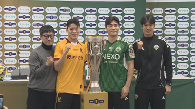 【 앵커멘트 】 광주FC가 내일(6일) 서울월드컵경기장에서 전북 현대와 코리아컵 우승을 놓고 단판 결승전을 치릅니다. 광주는 최근 5경기 1실점의 단단한 수비 조직력을 바탕으로 끈끈한 승부를 예고했습니다. 전준상 기자입니다. 【 기자 】 광주FC가 창단 이래 첫 코리아컵 우승에 도전합니다. 결승전 상대는 K리그1 챔피언 전북 현대. 전북 상대로 정규시즌 동안 한 경기도 승리하지 못 했지만, 이번 결승전에서는 꼭 승리하겠다는 각오입니다. ▶ 인터뷰 : 이강현 / 광주FC 주장 - "전북에게 더블이라는 타이틀을 내줄 수 없
