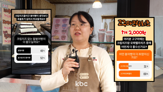 장 씨는 실제로 최근 투표에서 가장 많은 득표를 얻은 고구마 모차렐라 붕어빵을 신메뉴로 출시했습니다.