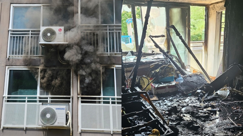 경찰과 소방 당국은 입주민이 거실 콘센트에서 배터리를 충전하던 중 불이 난 것으로 보고 정확한 화재 원인과 피해 규모를 조사하고 있습니다.