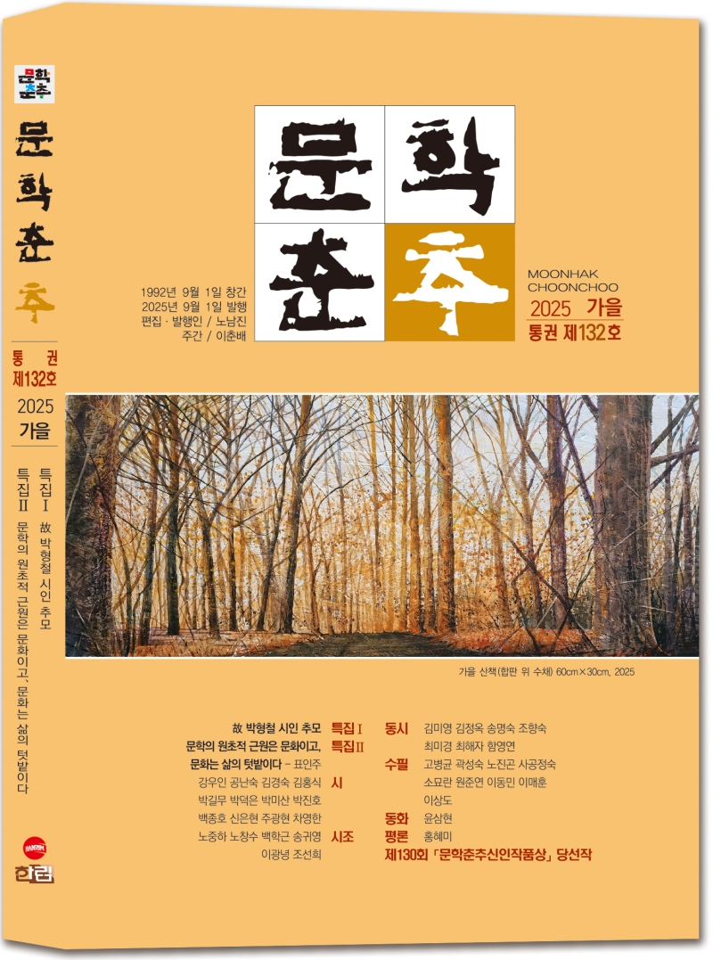 광주·전남 종합문예지 계간『문학춘추』가을호(통권 제132호)가 다채로운 기획특집과 풍성한 신작을 중심으로 발간됐습니다.