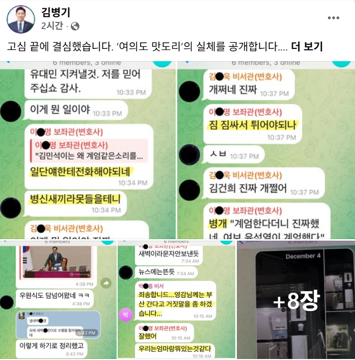 김 원내대표는 지난해 12월 4일 불법 계엄 사태 다음 날, 보좌직원 6명이 개설한 '여의도 맛도리'라는 비밀 대화방의 존재를 알게 됐다고 설명했습니다.