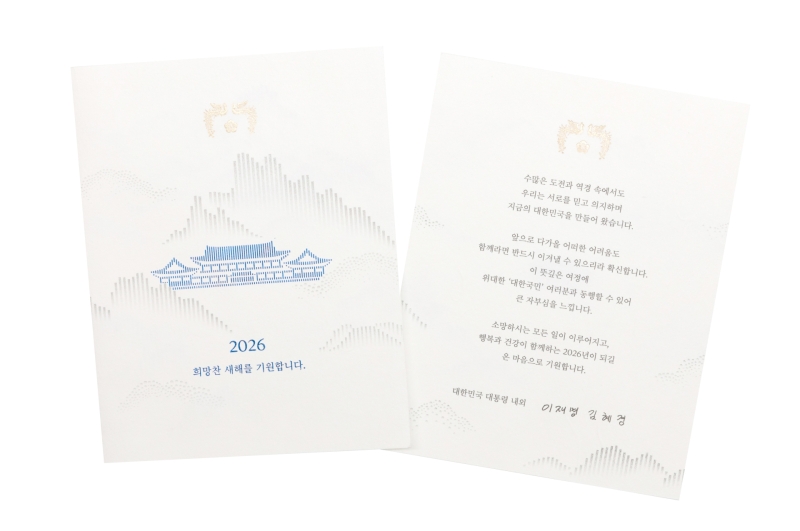 26일 대통령실에 따르면, 이 대통령은 국가 발전과 국민 생활 안정을 위해 헌신한 각계 주요 인사, 국가유공자, 사회적 배려 계층과 외국 정상, 재외동포 등에 신년 연하장을 보내 새해 인사를 전했습니다.