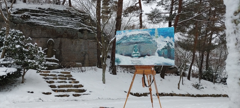 ▲ 29일 황순칠 작가가 선보이는 운주사의 겨울 풍경 회화 [황순칠 작가]