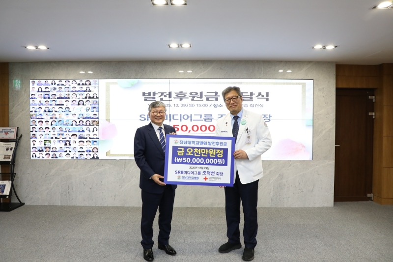 SRB미디어그룹의 조덕선 회장이 전남대학교병원에 발전후원금 5,000만 원을 기탁했습니다.
