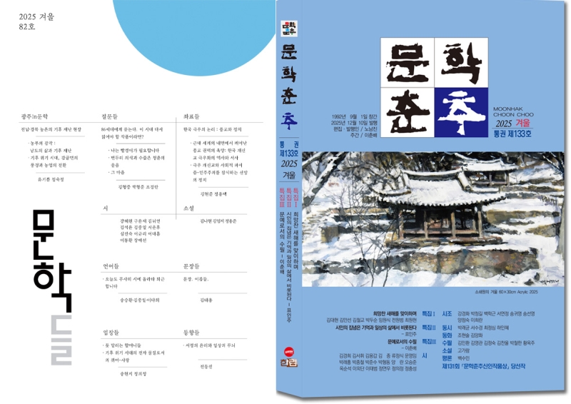 광주에서 발행되는 종합문예지 계간 『문학들』과 『문학춘추』 겨울호가 다채로운 신년 특집과 풍성한 작품들을 담아 출간됐습니다.
