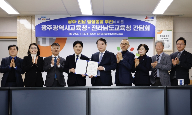 전남도교육청과 광주광역시교육청이 12일 광주·전남 행정 통합에 찬성하고 협력을 다짐하는 공동발표문을 채택했습니다.