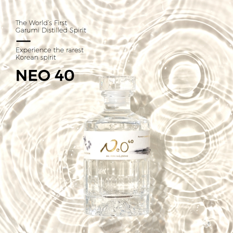 네오40은 전통 문헌 '고사촬요'에 기록된 생쌀 발효법을 현대적으로 복원해 제조한 증류주입니다.