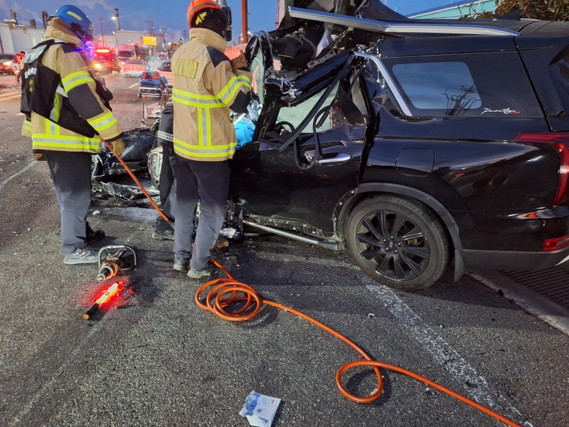 이 사고로 SUV차량 운전자가 심정지 상태로 병원에 이송됐으나 숨졌습니다.