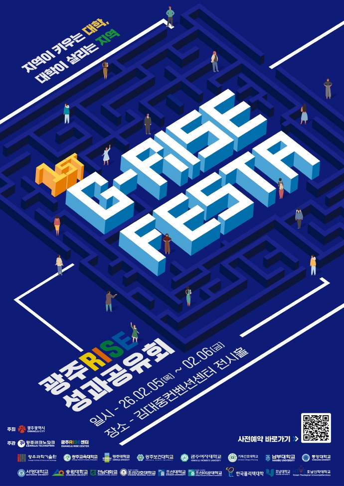 광주광역시는 5일부터 6일까지 이틀간 김대중컨벤션센터 전시홀에서 '지역이 키우는 대학, 대학이 살리는 지역'을 슬로건으로 제1회 광주RISE 성과공유회(G-RISE FESTA)를 개최합니다.