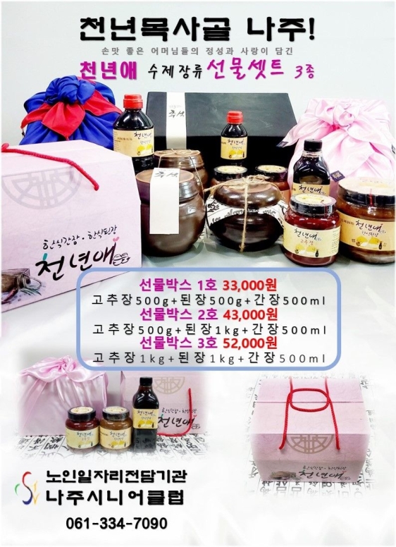 현재 남도장터에서 판매하는 노인 일자리 생산품은 △여수시니어클럽 김치류 △순천시니어클럽 손질 멸치·누룽지세트 △곡성시니어클럽 참기름 세트 △고흥시니어클럽 참깨 누룽지 △보성시니어클럽 녹차 기름 세트 △완도시니어클럽 김·유자사과 주스 세트 등입니다.