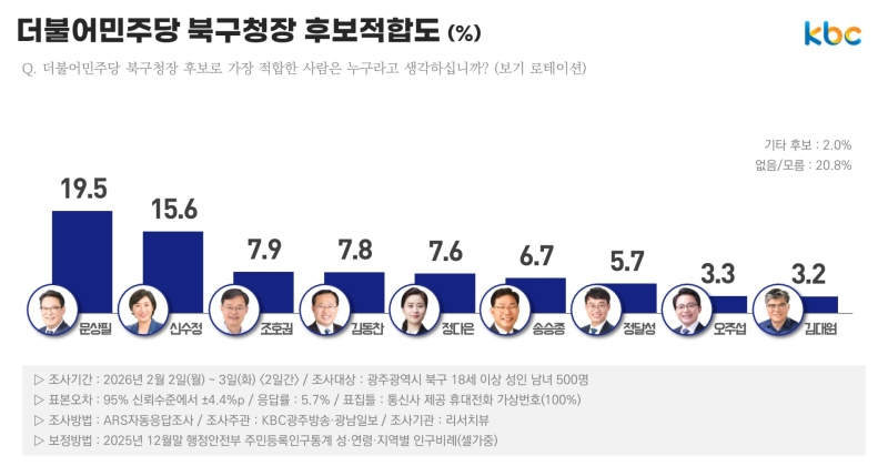 문상필 16.6%·신수정 14.5% '양강구도' [KBC 광주 북구청장 여론조사]