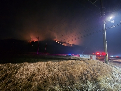 산림청은 야간산불 확산 저지를 위해 문무대왕면·양남면 산불 현장에 인력 341명과 장비 97대를 투입해 진화 작업을 벌이고 있습니다.