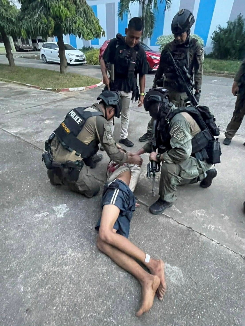 ▲ 지난 11일(현지시간) 태국 남부 송끌라주 핫야이 지역 한 고등학교에서 총기 인질극을 벌인 10대 소년이 경찰에 체포되고 있다. [연합뉴스]