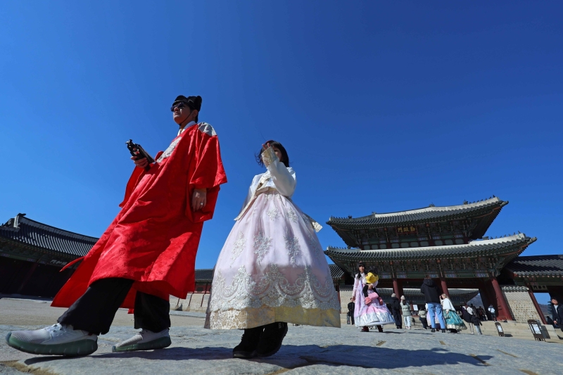 경복궁을 관광하던 중국인 관광객 2명이 궁 경비원을 폭행한 뒤 출국해버리는 일이 발생했습니다.