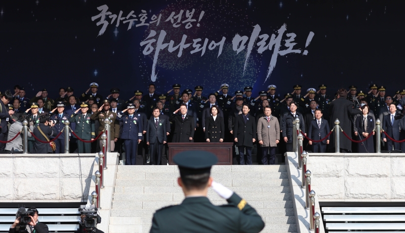 그러면서 "평화의 시대에 안주하여 미래를 대비하지 못하는 우를 범하지 않도록 세계정세를 이해하고 항상 경각심을 가져야 할 것"이라며 "어떤 상황에서도 스스로를 지켜낼 수 있는 나라, 누구도 감히 우리의 주권을 넘볼 수 없는 나라를 만들기 위해 강력한 국방력은 필수"라고 말했습니다.