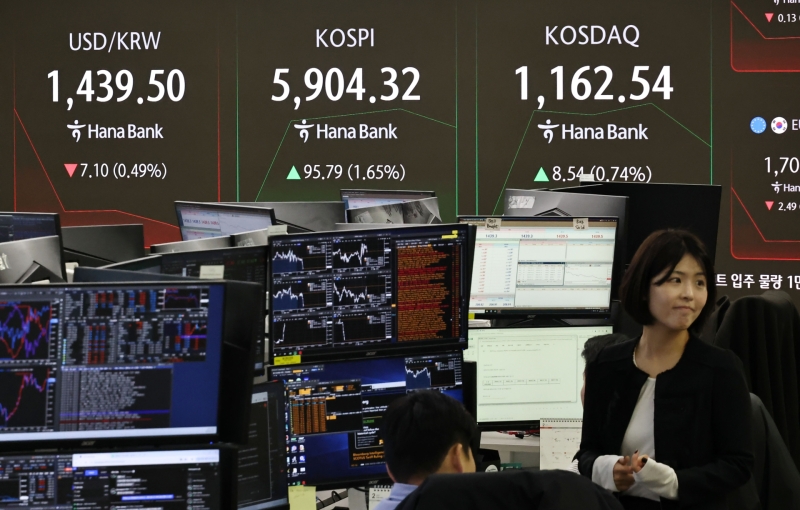 이날 오전 코스피는 개장하자마자 치솟아 전장보다 120포인트, 2% 넘게 오르며 5,900선을 넘어섰습니다.