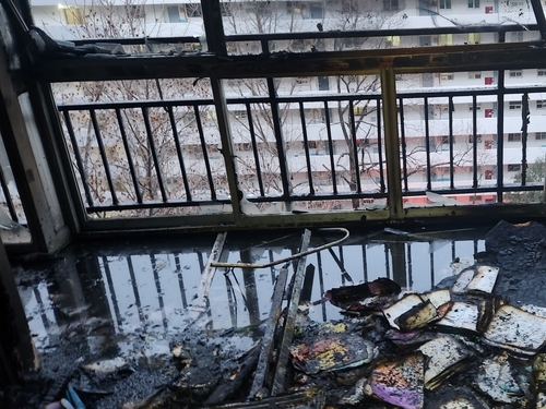 이날 소방 당국이 공개한 집 베란다 사진에는 불에 타다 만 책들이 널브러져 있었습니다.